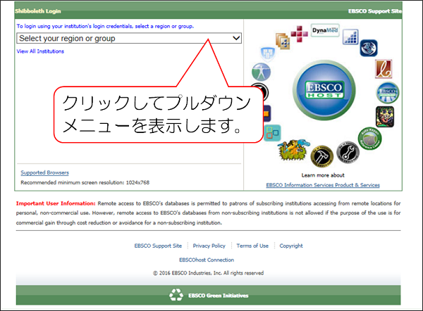 http://search.ebscohost.com/login.aspx?authtype=shib にアクセス