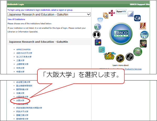表示される大学一覧の中から「大阪大学」を選択します。