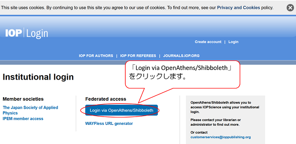「Login Via OpenAthens/Shibboleth」をクリックします。