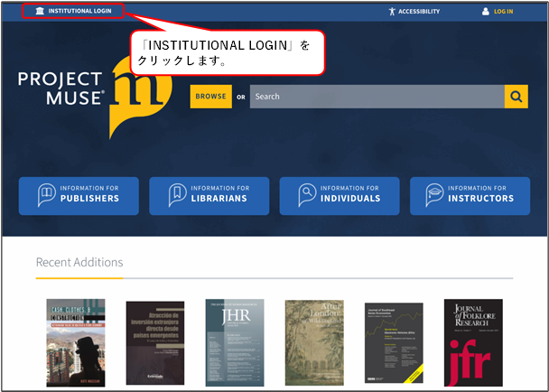 画面上部左側の「INSTITUTIONAL LOGIN」をクリックします。