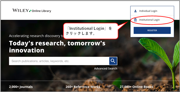 "Search for your institution" に「Osaka」と入力し、選択肢の「The University of Osaka」をクリックします。