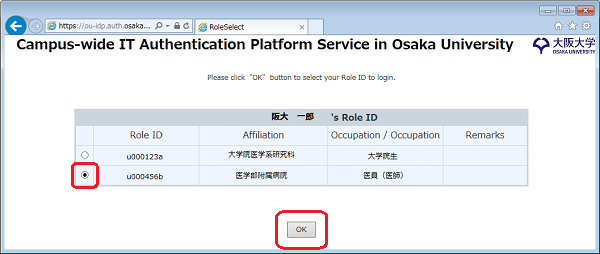 (2)Select your role ID that you want to use for logging in to the SSO-integrated system