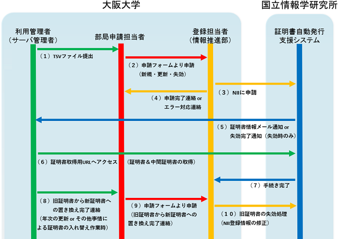 サーバ証明書の発行手続きについては以下のフローをご参照ください。